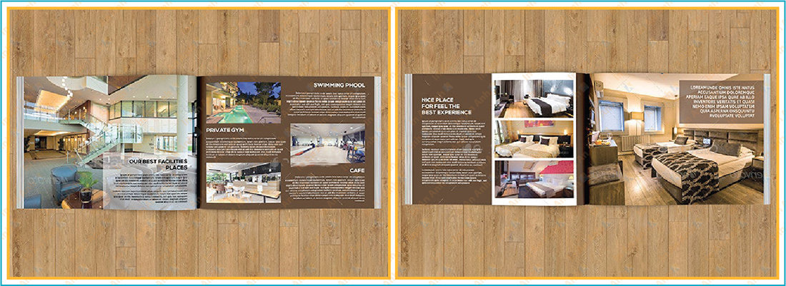 Một catalogue khách sạn hoàn hảo là cần phải có sự cân đối giữa hình ảnh và nội dung thể hiện. Và cách thức trình bày bố cục sao cho khoa học, hợp lý và thuận mắt đóng một vai trò vô cùng quan trọng. thông thường, phần nội dung sẽ được đóng thành khung và thể hiện bên cạnh hình ảnh minh hoạ. Hoặc cũng có những mẫu nội dung và hình sẽ sẽ được chia ra những trang riêng nếu lượng thông tin truyền tải quá lớn.