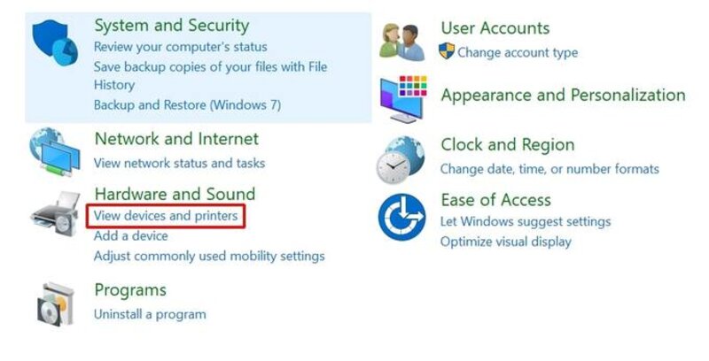 - Bước 2: Truy cập vào Control Panel và chọn mục “View devices and printers”.