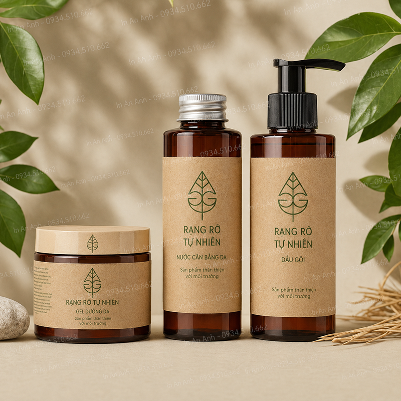 Đối với các thương hiệu mỹ phẩm hữu cơ, xà phòng thủ công, hoặc nến thơm, tem nhãn decal kraft giúp nhấn mạnh nguồn gốc "thiên nhiên" của sản phẩm. Một chiếc tem kraft với thiết kế tối giản dán trên hũ sáp, lọ tinh dầu hay thanh xà phòng ngay lập tức tạo cảm giác an toàn, lành tính và gần gũi với người tiêu dùng.