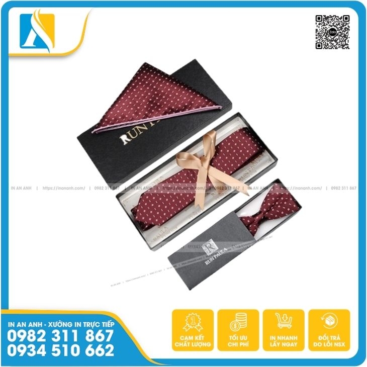 Là đơn vị hoạt động lâu năm trong lĩnh vực in ấn, In An Anh tự hào đồng hành cùng quý doanh nghiệp trong thiết kế và in ấn các loại ấn phẩm khác nhau từ poster, banner cho đến in hộp đựng cà vạt và nhiều sản phẩm khác. In An Anh luôn cập nhật các mẫu mã và xu hướng in hộp cà vạt mới nhất để doanh nghiệp tạo được ấn tượng tốt hơn trên thị trường.