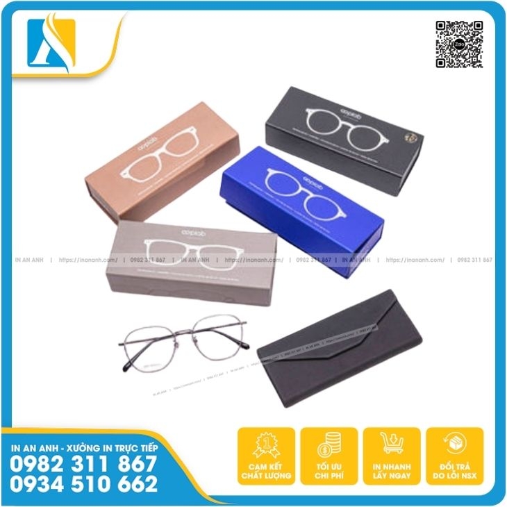 Hộp đựng kính không chỉ giúp bảo vệ tròng kính và gọng kính khỏi trầy xước, va đập mà còn góp phần tăng tính thẩm mỹ, thể hiện phong cách thời trang riêng. Nếu bạn đang quan tâm đến dịch vụ in hộp giấy đựng mắt kính chất lượng, bài viết dưới đây từ In An Anh sẽ cung cấp đầy đủ thông tin cũng như giới thiệu quy trình in ấn chi tiết để bạn tham khảo.