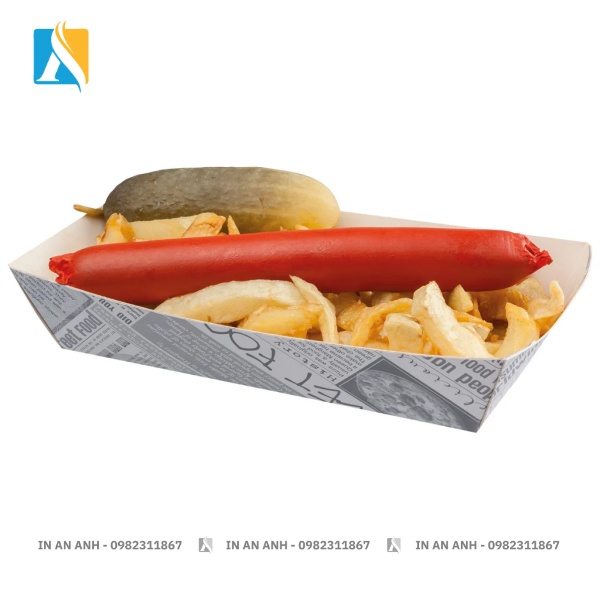 Khay giấy kraft in ấn thân thiện môi trường cho xúc xích mang đi