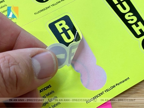 Decal vỡ là loại nhãn mác được thiết kế đặc biệt để đảm bảo tính bảo mật. Khi đã dán lên sản phẩm, nếu bóc ra sẽ bị rách vụn và không thể tái sử dụng, ngăn chặn hành vi tráo đổi hoặc gian lận. Bề mặt decal có thể in logo, thông tin bảo hành, mã QR hoặc số seri để xác minh nguồn gốc sản phẩm.