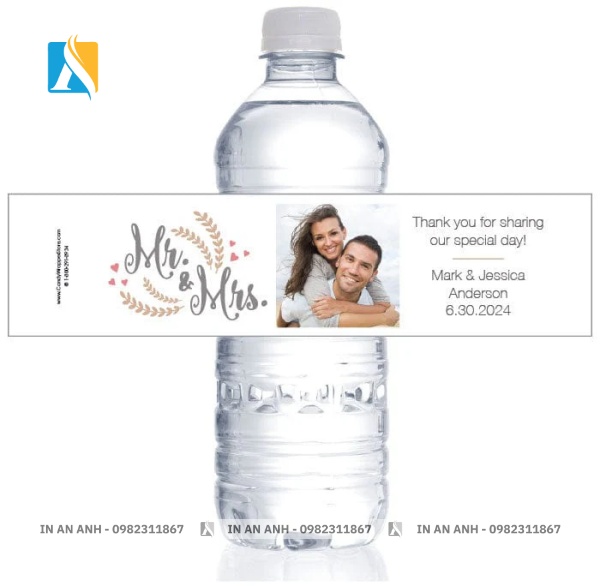 Nhãn dán chai nhựa in hình cô dâu chú rể cho đám cưới