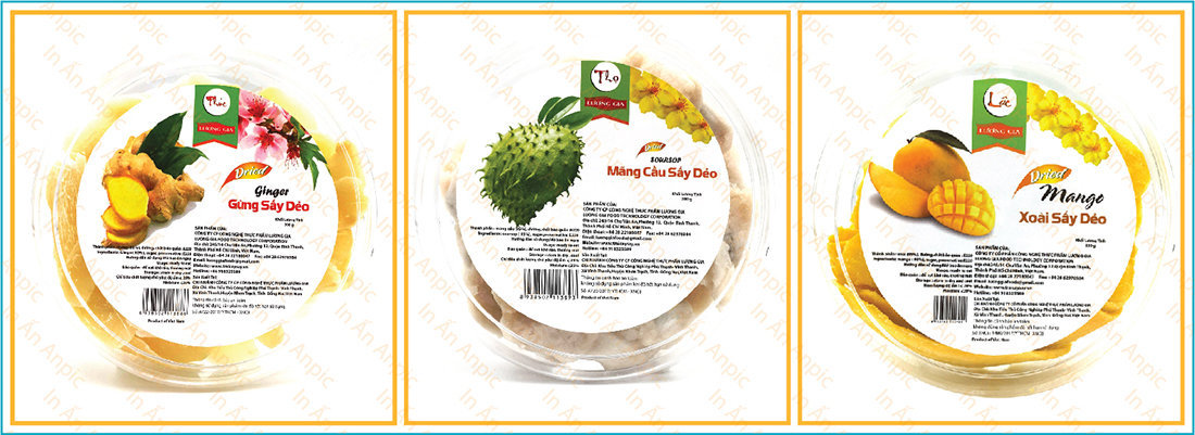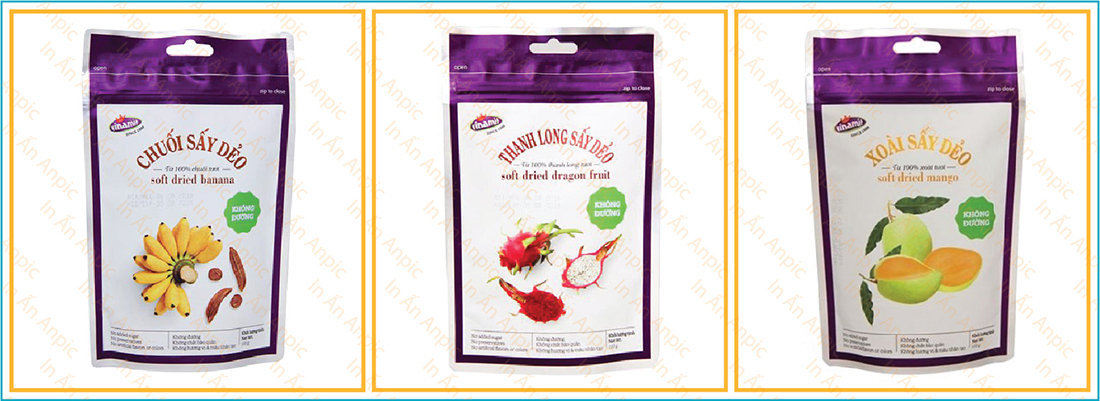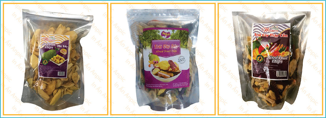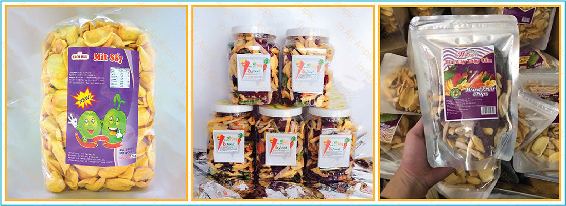 Dưới đây là một số mẫu nhãn dán túi, hộp đựng trái cây sấy giúp bạn hiểu rõ hơn về vai trò, giá trị của chúng: